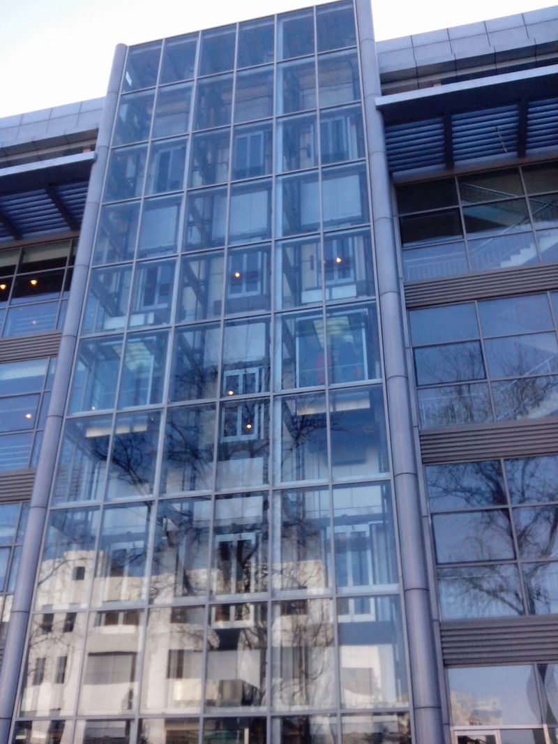 北京市解放軍藝術學院 食堂外觀光電梯結構及幕墻。